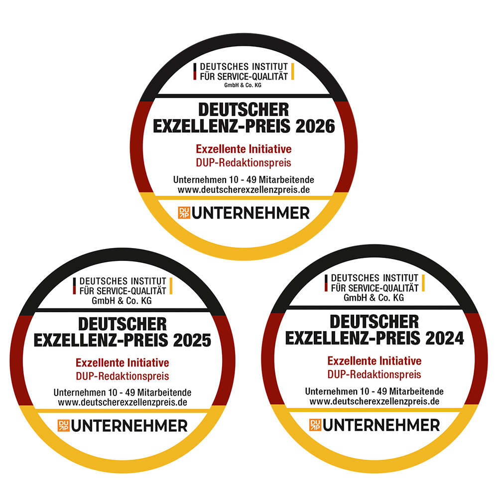 Deutsche Exzellenz-Preis 2025 verliehen! Mit dem vom Deutschen Institut für Service-Qualität und dem DUP UNTERNEHMER-Magazin initiiertem Preis werden digitale Innovationen und Leistungen gewürdigt. Über die Preisträger der siebten Auflage des renommierten Awards entschied eine hochkarätig besetzte Jury; die Schirmherrschaft liegt in den Händen von Ex-Bundesministerin Brigitte Zypries Der Deutsche Exzellenz-Preis steht unter dem Leitgedanken ‚Digital, innovativ, kreativ‘. Award-Schirmherrin Brigitte Zypries weist auf die Bedeutung hin, Innovationen sichtbarer zu machen: „Die deutsche Wirtschaft durchläuft einen tiefgreifenden digitalen Wandel, bei dem viele herausragende Leistungen nicht die Aufmerksamkeit erhalten, die sie verdienen. Der Deutsche Exzellenz Preis rückt diese Innovationen ins Rampenlicht. Sie werden gewürdigt und sie sollen so zugleich anderen Unternehmen ein Beispiel sein.“